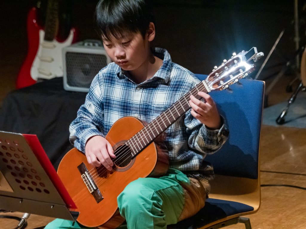 今年はソロギターで参加してくれたTくん。難易度の高いアレンジだったので「本番までに間に合うのか!?」と心配もありましたが、基礎からしっかり練習に取り組んでくれました。本番では、発表会前の最後のレッスンのときよりも良い演奏を聴かせてくれました。よく頑張りました!