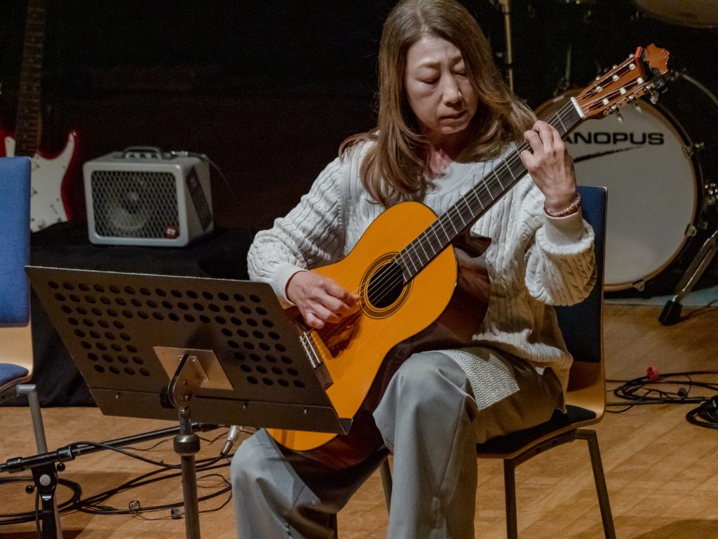 今年はソロで参加(続く四重奏も参加)のHさん。以前から「いつか弾いてみたい」と言っていた曲にチャレンジ。セーハが多く大変だったと思いますが、目標がひとつ叶いましたね。教本の進み具合からしたら、少し背伸びしたチャレンジだったかも知れませんが、技術的な部分だけではなく、表現力も大きく進歩しました。
