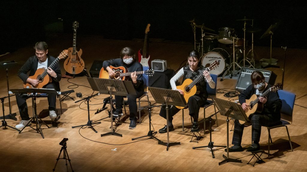 今年も前回に続き、僕の編曲した曲にチャレンジしていただきました。もとはピアノ・チェロ・バイオリンのトリオ曲でしたが、ギター四重奏用にアレンジしたところ、とても相性がよく、仕上がりも素晴らしいものになりました。いつか譜面として形にし、多くのギタリストに演奏してもらえる日が来たら嬉しいです。