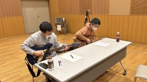 演奏後は、恒例のおやつタイム。世代は違っても、音楽をきっかけに自然と会話が弾み、楽しいひとときとなりました。そして恒例のじゃんけん大会(ささやかなプレゼント付き)も開催。プレゼントは、ギターのメンテナンスやチューニングにまつわるグッズを厳選。気に入ってくれるとうれしいです。まさに「おたのしみ会」らしい時間となりました。